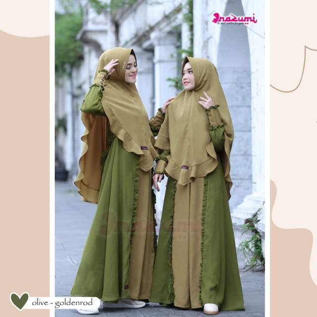 Ket detail > Terdapat resleting bagian depan, #busuifriendly > Pada lengan terdapat kancing #wudhufiendly. Nah, salah satu yang paling menonjol adalah warna olive atau warna hijau yang cenderung lebih pudar, kalau dibandingkan dengan lime green atau forest green. Baiknya, gunakan warna hijau olive dan pink coral atau pastel agar lebih mudah dipadukan dan nggak terkesan norak.